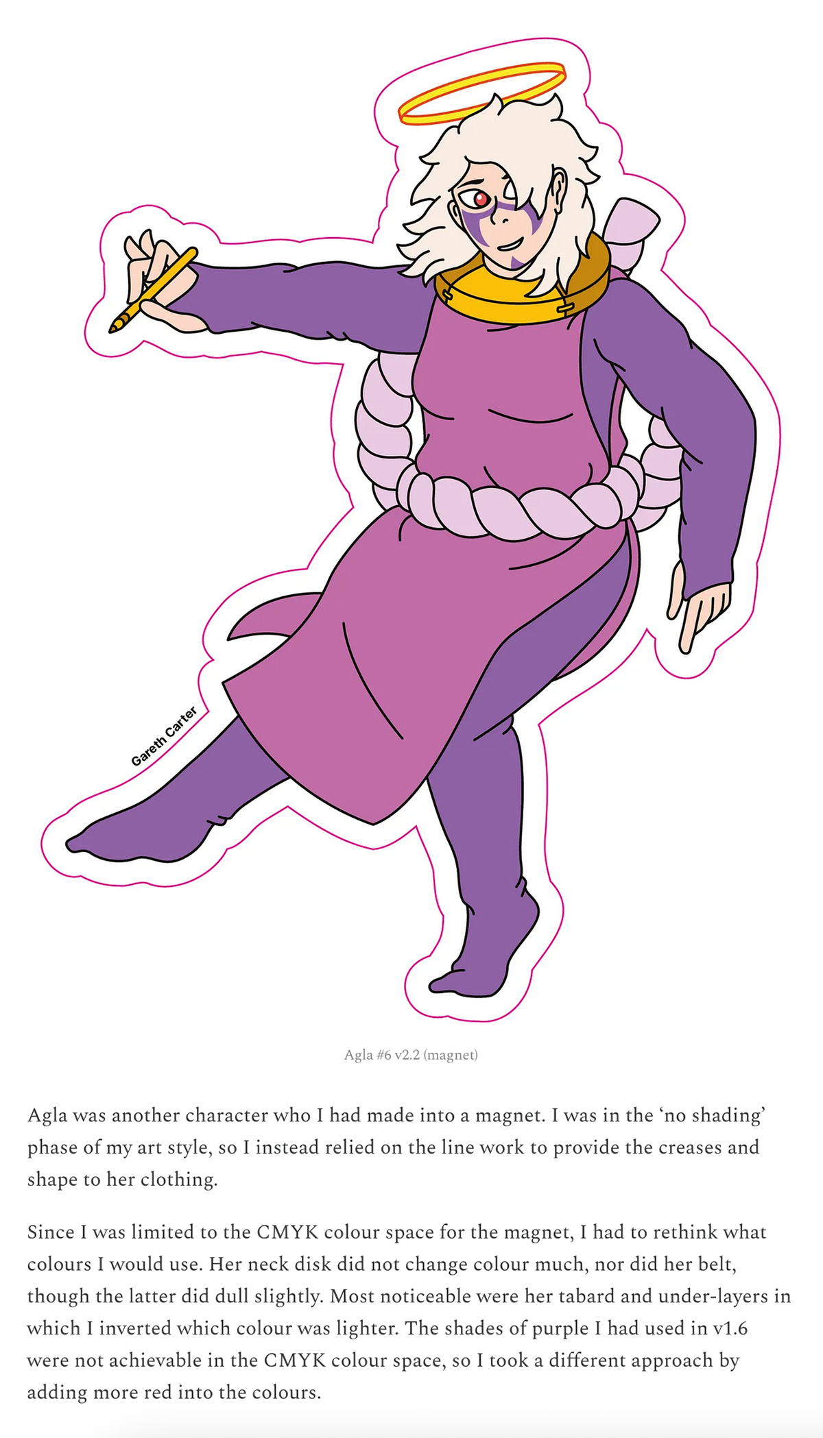 ‘Art is never finished’ is my favourite phrase when it comes to my digital art. As they are vector drawings, the ease of editing allows me to tweak them as I update my style or my vision of the character changes.
